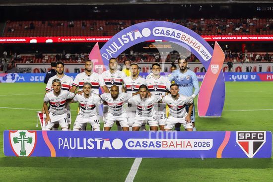2871325 Elenco do São Paulo durante a partida entre São Paulo e Portuguesa, válida pela 4ª rodada do Paulistão, realizada na noite desta quarta-feira (21) no MorumBIS em São Paulo, SP.