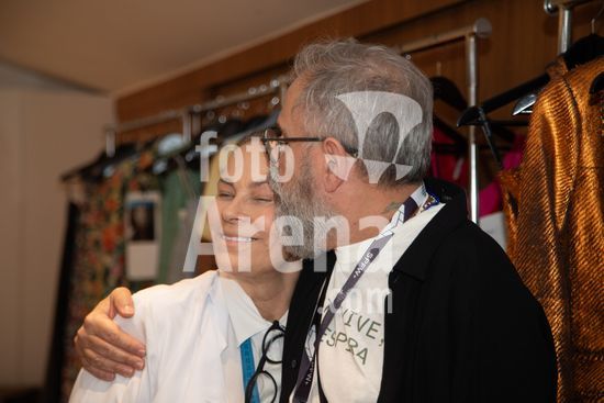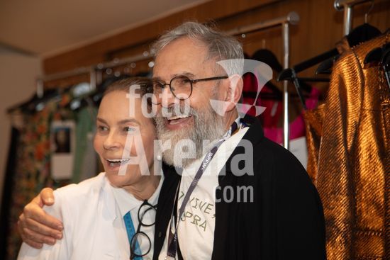 2823969 Paulo Borges, criador da SPFW e estilista Patricia Vieira antes de seu desfile na SPFW N60 na manhã desta terça-feira (14) no Teatro Iguatemi, em São Paulo, SP.