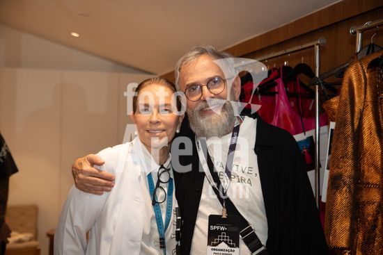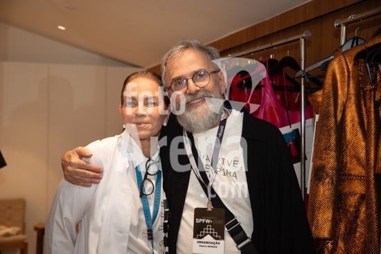 2823971 Paulo Borges, criador da SPFW e estilista Patricia Vieira antes de seu desfile na SPFW N60 na manhã desta terça-feira (14) no Teatro Iguatemi, em São Paulo, SP.