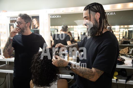 2823977 Backstage do desfile da marca Forca na SPFW N60 na tarde desta terça-feira (14) no Campo de Marte, em São Paulo, SP.