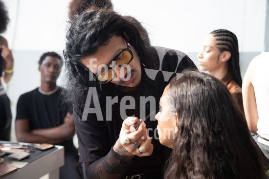 2823979 Backstage do desfile da marca Forca na SPFW N60 na tarde desta terça-feira (14) no Campo de Marte, em São Paulo, SP.