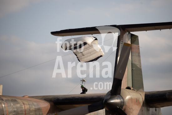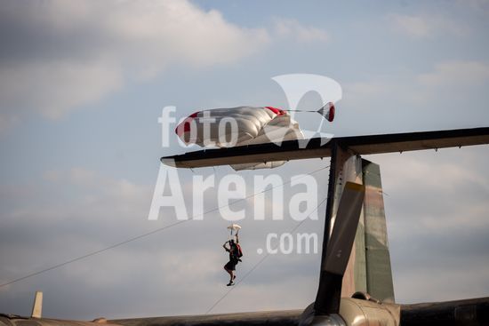 2824024 Desfile da marca Forca na SPFW N60 acontece na tarde desta terça-feira (14) no Campo de Marte, em São Paulo, SP e conta com salto de paraquedistas.