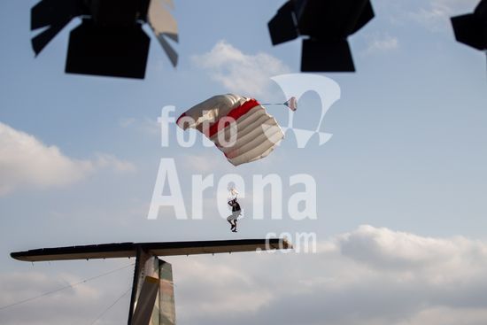 2824025 Desfile da marca Forca na SPFW N60 acontece na tarde desta terça-feira (14) no Campo de Marte, em São Paulo, SP e conta com salto de paraquedistas.