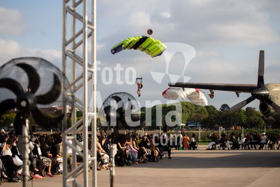 2824030 Desfile da marca Forca na SPFW N60 acontece na tarde desta terça-feira (14) no Campo de Marte, em São Paulo, SP e conta com salto de paraquedistas.