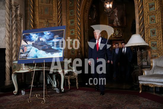 ny221225193311 President Donald Trump arrives at an event with renderings labeled as a ?Trump Class? ship for the Navy during an event at Mar-a-Lago in Palm Beach, Fla., on Monday, Dec. 22, 2025. He said he expects the U.S. government to acquire 25 of the new vessels that are expected to be called Trump-class battleships. (Eric Lee/The New York Times/Fotoarena)