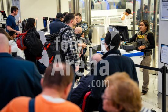 ny270326095611 A federal immigration agent, assigned to the Department of Homeland SecurityÕs Enforcement and Removal Operations division, works at a security checkpoint at LaGuardia Airport in New York on Friday morning, March 27, 2026. The Senate voted early Friday to fund the Department of Homeland Security except for its immigration enforcement and deportation operations, raising the prospect of an end to a weekslong partial shutdown that has strained federal workers and caused long waits at airports. (Vincent Alban/The New York Times/Fotoarena)