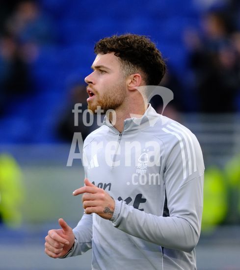 2854406 Nicolo Savona, do Nottingham Forest, durante o aquecimento pre-jogo na partida da Premier League entre Everton e Nottingham Forest, no Estadio Hill Dickinson, em Liverpool. (Paul Bonser/Sports Press Photo / SPP)
