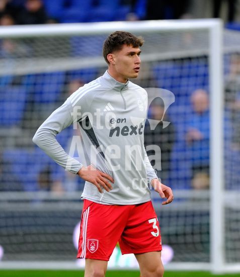 2854405 Nikola Milenkovic, do Nottingham Forest, durante o aquecimento pre-jogo na partida da Premier League entre Everton e Nottingham Forest, no Estadio Hill Dickinson, em Liverpool. (Paul Bonser/Sports Press Photo / SPP)