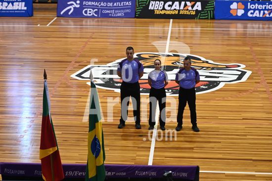 2892946 Imagens da partida entre o Caxias Basquete e o Basket Osasco, válida pelo NBB 25/26, disputada no Ginásio do SESI, em Caxias do Sul. Arbitragem no moneto do Hino Nacional. Caxias do Sul, RS (22).