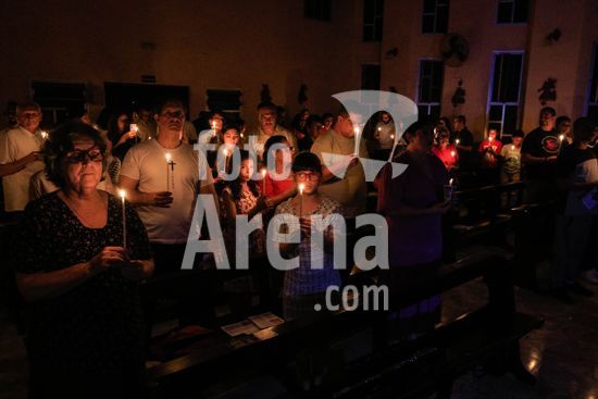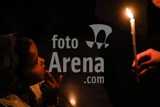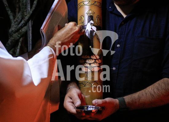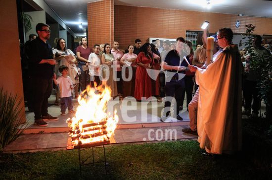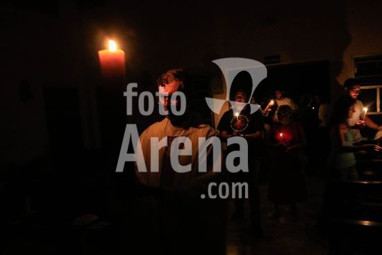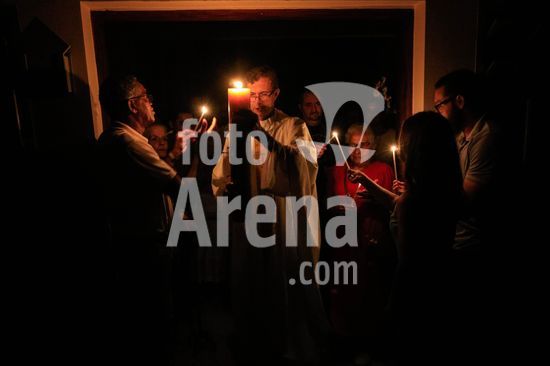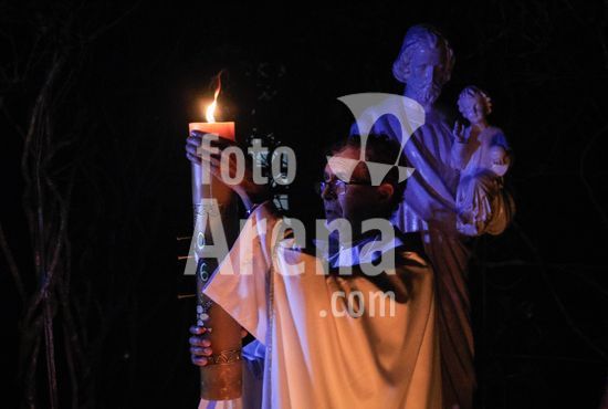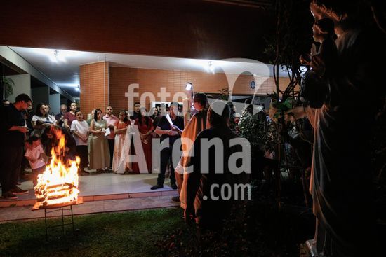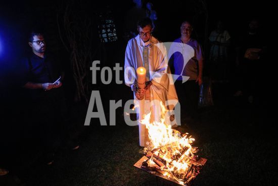Missa da Vigília Pascal (noite de sábado para domingo de Páscoa) é a celebração mais importante do ano litúrgico, começando com a bênção do Fogo Novo fora da igreja. Este fogo, que simboliza a luz de Cristo Ressuscitado que vence as trevas, acende o Círio Pascal, representando a luz que ilumina o mundo. Na foto, celebração da vigilia no Mosteiro Santa Gema Galgani, em São Paulo na noite deste sábado (05).