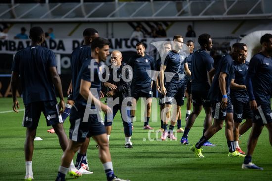 2917597 Aquecimento do Remo para a partida entre Santos e Remo, válida pela 9ª rodada do Brasileirão, realizada na noite desta quinta-feira (02) no Estádio Urbano Caldeira, a Vila Belmiro, em Santos, SP.