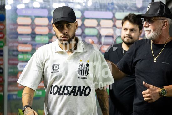 2879385 Neymar Junior, ainda não relacionado para jogo, durante a partida entre Santos e São Paulo, válida pela 2ª rodada do Brasileirão, realizada na noite desta quarta-feira (04) no Estádio Urbano Caldeira, a Vila Belmiro em Santos, SP.