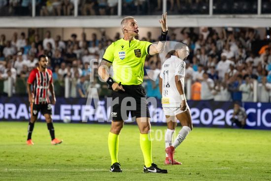 2879379 Árbitro Anderson Daronco durante a partida entre Santos e São Paulo, válida pela 2ª rodada do Brasileirão, realizada na noite desta quarta-feira (04) no Estádio Urbano Caldeira, a Vila Belmiro em Santos, SP.