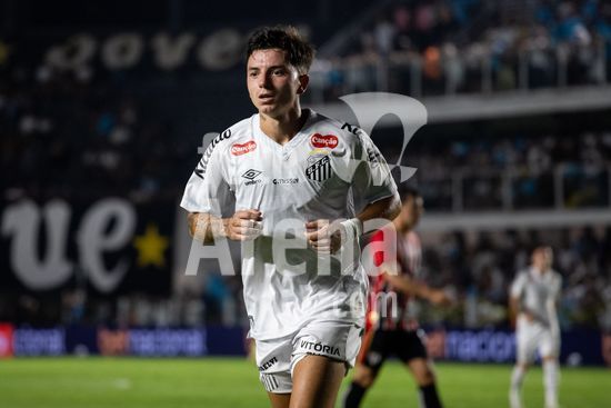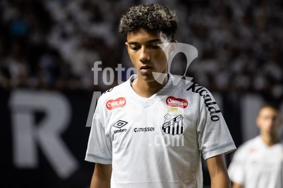 2879388 Gabriel Menino durante a partida entre Santos e São Paulo, válida pela 2ª rodada do Brasileirão, realizada na noite desta quarta-feira (04) no Estádio Urbano Caldeira, a Vila Belmiro em Santos, SP.