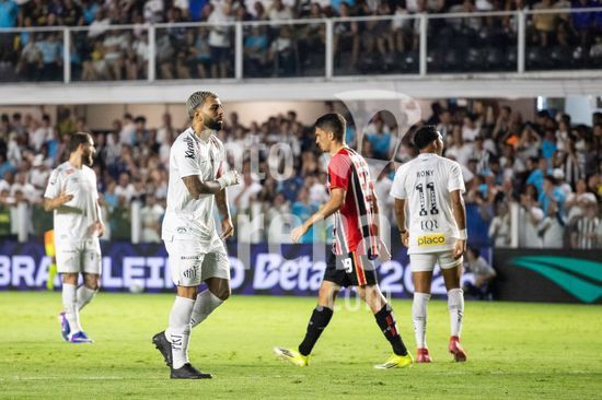 2879422 Gabriel Barbosa (Gabigol) lamenta chance perdida durante a partida entre Santos e São Paulo, válida pela 2ª rodada do Brasileirão, realizada na noite desta quarta-feira (04) no Estádio Urbano Caldeira, a Vila Belmiro em Santos, SP.