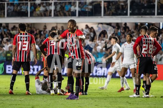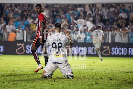 2879429 Alvaro Barreal lamenta gol de Jonathan Calleri do São Paulo durante a partida entre Santos e São Paulo, válida pela 2ª rodada do Brasileirão, realizada na noite desta quarta-feira (04) no Estádio Urbano Caldeira, a Vila Belmiro em Santos, SP.