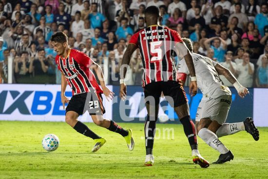 2879430 Alan Franco durante a partida entre Santos e São Paulo, válida pela 2ª rodada do Brasileirão, realizada na noite desta quarta-feira (04) no Estádio Urbano Caldeira, a Vila Belmiro em Santos, SP.