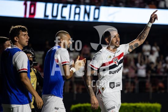 2875697 Luciano comemora gol durante a partida entre São Paulo e Flamengo, válida pela 1ª rodada do Brasileirão 2026, realizada na noite desta quarta-feira (28) no MorumBIS em São Paulo, SP.