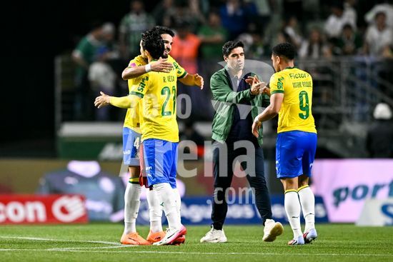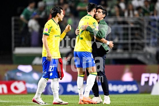 2824751 Abel Ferreira, tecnico do Palmeiras comemora com José Manuel López do Palmeiras apos ganhar a partida entre Palmeiras e Bragantino válida pela 28ª rodada do Campeonato Brasileiro 2025 realizada no Allianz Parque na noite desta quarta (15).