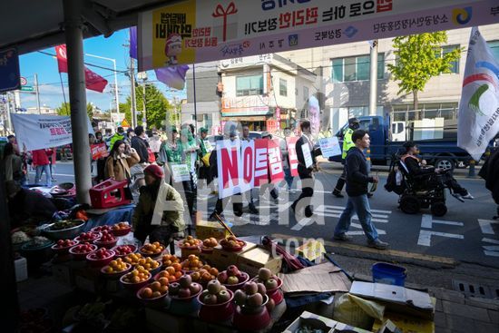 ny011125130113 Protest took to the streets to demonstrate against the APEC Summit and President Donald Trump in Gyeongju, South Korea on Saturday, Nov. 1, 2025. South Korea?s new leader, President Lee Jae Myung, rolled out the red carpet for both China?s leader, Xi Jinping, and Trump this week, but the superpower rivalry is making it harder to balance relations. (Chang W. Lee/The New York Times/Fotoarena)