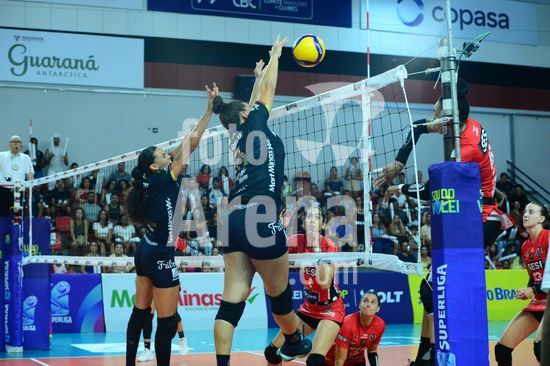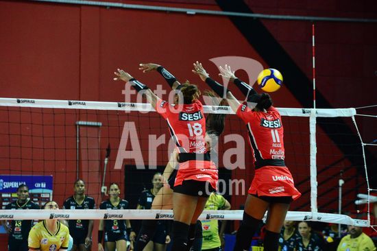 2867740 Partida entre Batavo Mackenzie x Sesi Bauru, aconteceu nesta segunda-feira (12), na Arena Batavo Mackenzie, em Belo Horizonte/MG. Bloqueio do Sesi Bauru.