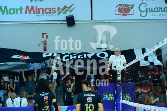 2867743 Partida entre Batavo Mackenzie x Sesi Bauru, aconteceu nesta segunda-feira (12), na Arena Batavo Mackenzie, em Belo Horizonte/MG. Juiz com torcida ao fundo.