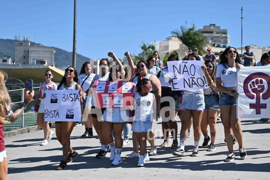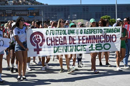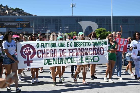 2904878 Fluminense e Athletico-PR disputam partida válida pela 6ª rodada do Campeonato Brasileiro Série A, no Estádio do Maracanã, na tarde deste domingo (15), no Rio de Janeiro. Manifestação Chega de Feminicidio