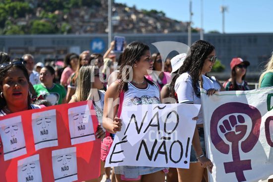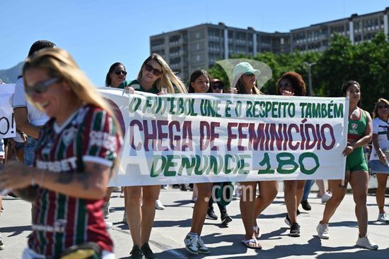 2904872 Fluminense e Athletico-PR disputam partida válida pela 6ª rodada do Campeonato Brasileiro Série A, no Estádio do Maracanã, na tarde deste domingo (15), no Rio de Janeiro. Manifestação Chega de Feminicidio