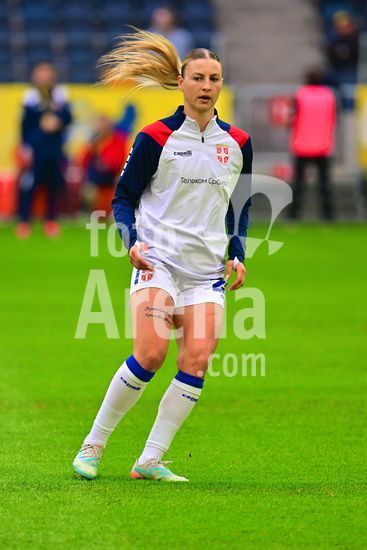 2927608 Strawberry Arena, SOLNA, SUECIA - 18 DE ABRIL: Sofija Sremcevic, da Servia, antes da partida de qualificacao para a Copa do Mundo de 2027 entre Suecia e Servia, na Strawberry Arena, em 18 de abril de 2026, em Solna, Suecia. (Peter Sonander/SPP)