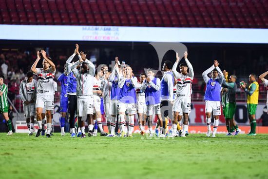 2929391 Jogadores do São Paulo Comemoram a vitória durante partida entre São Paulo FC x Juventude, jogo de ida da quinta fase da Copa do Brasil 2026, nesta terça feira (21), no Morumbis, SP.