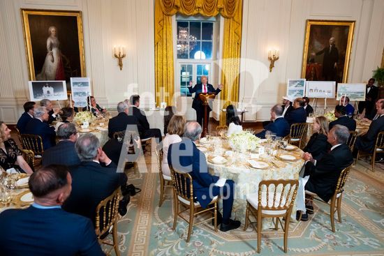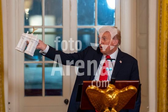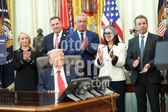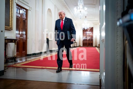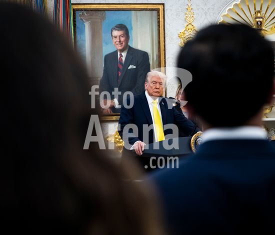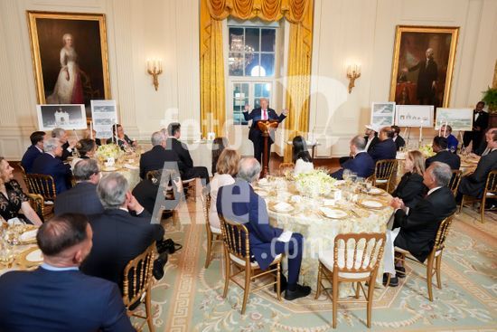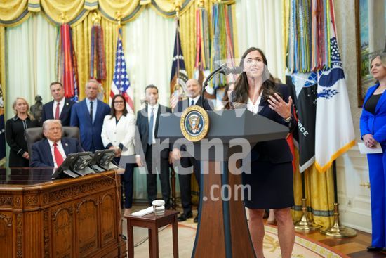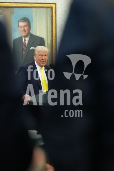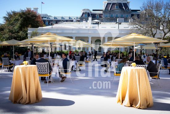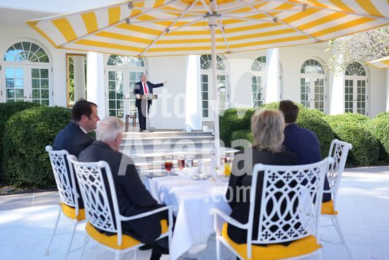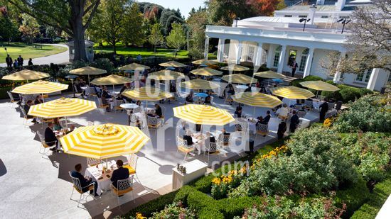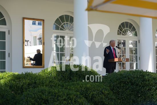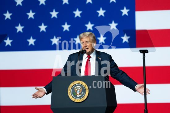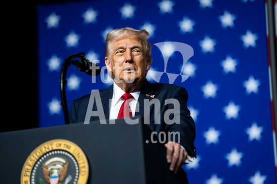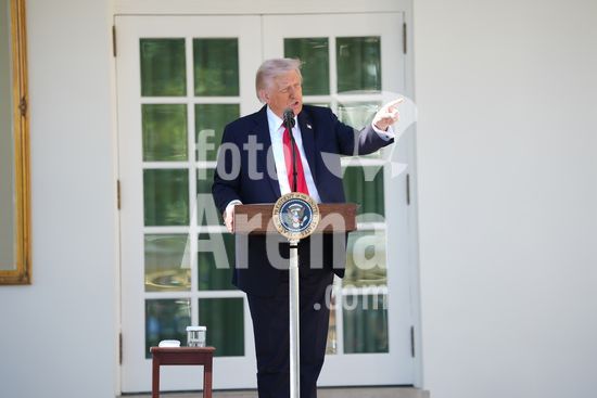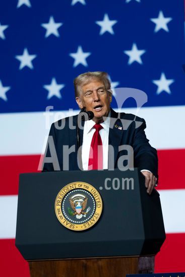 President Donald Trump speaks at a luncheon for Senate Republicans in the White House Rose Garden on Tuesday, Oct. 21, 2025. During the lunch President Trump used his remarks to rail against Democrats over the government shutdown, now in its 21st day. (Doug Mills/The New York Times/Fotoarena)