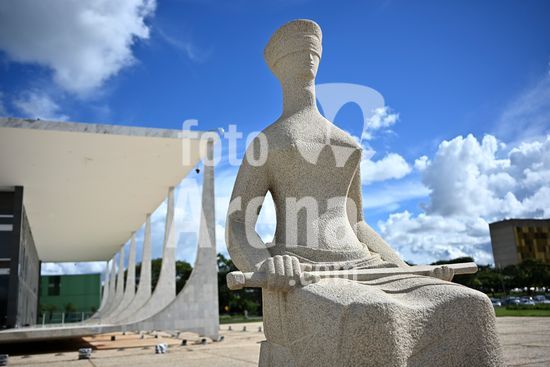 2911668 Foto, Estátua da Justiça. Nesta quarta (25) os ministros do STF iniciam a votação da suspensão do pagamento de penduricalhos no Judiciário, Legislativo e Executivo. Os ministros Flávio Dino e Gilmar Mendes suspenderam os pagamentos irregulares.