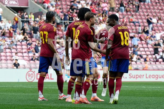 2920190 Genebra, Suica - 6 de abril: Miroslav Stevanovic, do Servette FC, comemora apos marcar o primeiro gol de sua equipe com o companheiro Malek Ishuayed, tambem do Servette FC, durante a partida da Superliga de Brack entre Servette FC e FC Lucerne, no Estadio de Genebra, em 6 de abril de 2026, em Genebra, Suica. (Giuseppe Velletri / SPP)
