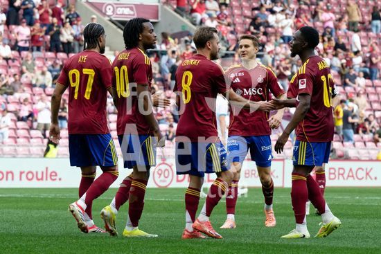 2920219 Genebra, Suica - 6 de abril: Timothe Cognat, do Servette FC, comemora com seus companheiros de equipe apos marcar o segundo gol de sua equipe durante a partida da Superliga de Brack entre Servette FC e FC Lucerne, no Estadio de Genebra, em 6 de abril de 2026, em Genebra, Suica. (Giuseppe Velletri / SPP)