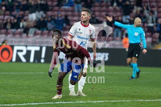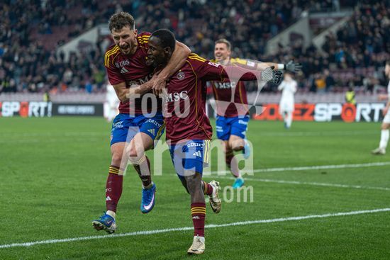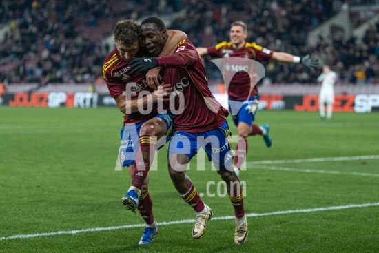 2877499 Ablie Jallow (30 Servette) e Miroslav Stevanojic (9 Servette) comemorando o terceiro gol (3-2) durante a partida da Superliga de Brack entre Servette FC e FC Sion no Stade de Geneve, em Genebra, Suica. (Fotos de Carla Botica/Sports Press Photo/SPP) (Carla Botica / SPP)