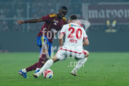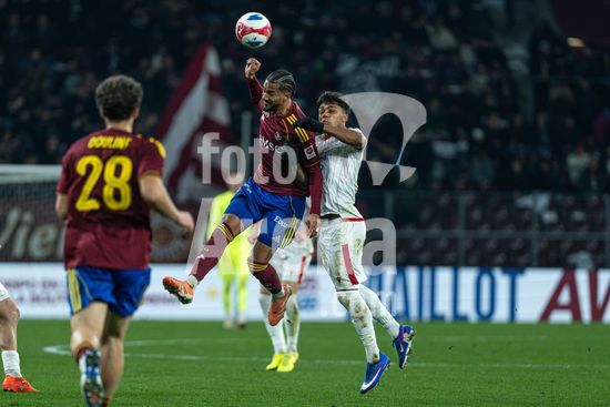 2877480 Disputa aerea entre Florian Aye (97 Servette) e Noe Sow (5 Sion) durante o jogo da Superliga de Brack entre Servette FC e FC Sion no Stade de Geneve, em Genebra, Suica. (Fotos de Carla Botica/Sports Press Photo/SPP) (Carla Botica / SPP)