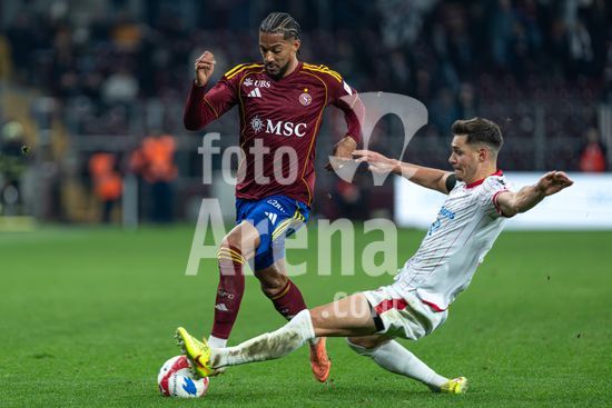 2877492 Disputa aerea entre Florian Aye (97 Servette) e Baltazar Costa (8 Sion) durante o jogo da Superliga de Brack entre Servette FC e FC Sion no Stade de Geneve, em Genebra, Suica. (Fotos de Carla Botica/Sports Press Photo/SPP) (Carla Botica / SPP)