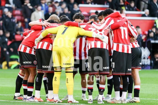 2838923 Jogadores do Sheffield United antes da partida do EFL Sky Bet Championship entre Sheffield United e Queens Park Rangers em Bramall Lane, Sheffield, Inglaterra, em 8 de novembro de 2025. (Sean Chandler / SPP)
