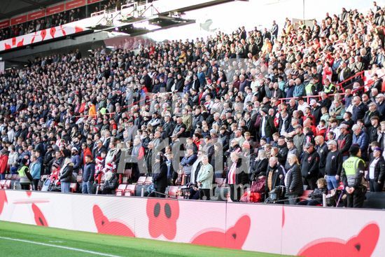2838948 Espectadores durante o minuto de silencio antes da partida do EFL Sky Bet Championship entre Sheffield United e Queens Park Rangers em Bramall Lane, Sheffield, Inglaterra, em 8 de novembro de 2025. (Sean Chandler / SPP)