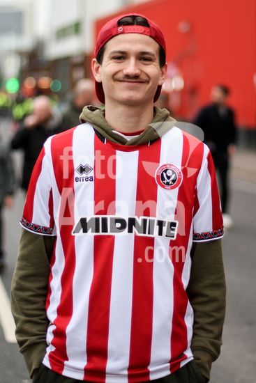 2900222 SHEFFIELD, INGLATERRA - 7 de marco: Torcedor do Sheffield United antes da partida do Sky Bet Championship entre Sheffield United e West Bromwich Albion em Bramall Lane, em 7 de marco de 2026, em Sheffield, Inglaterra. (Sean Chandler / SPP)