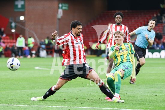 2900237 SHEFFIELD, INGLATERRA - 7 de marco: Ollie Bostock, do West Bromwich Albion, chuta a gol durante a partida do Sky Bet Championship entre Sheffield United e West Bromwich Albion, no Bramall Lane, em 7 de marco de 2026, em Sheffield, Inglaterra. (Sean Chandler / SPP)