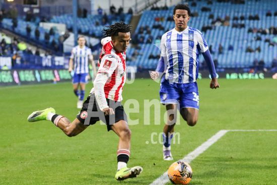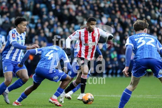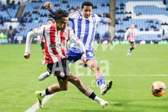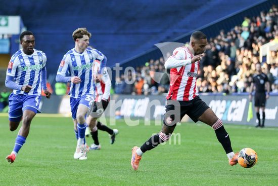 2867160 Romelle Donovan (45 Brentford) controla a bola durante a partida da FA Cup entre Sheffield Wednesday e Brentford no Estadio Hillsborough em Sheffield, Inglaterra, em 10 de janeiro de 2026. (Sean Chandler / SPP)