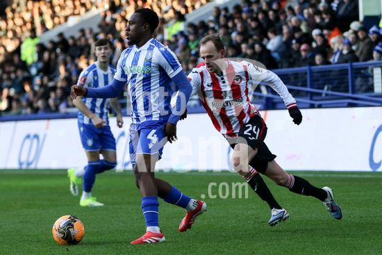 2866467 Sean Fusire (4 Sheffield Wednesday) controla a bola enquanto Mikkel Damsgaard (24 Brentford) corre atras dela durante a partida da FA Cup entre Sheffield Wednesday e Brentford no Estadio Hillsborough em Sheffield, Inglaterra, em 10 de janeiro de 2026. (Sean Chandler / SPP)