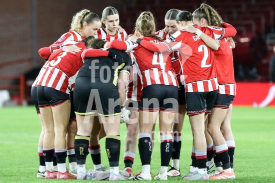 2867756 Jogadoras do Sheffield United antes da partida da Barclays Women's Super League 2 entre Sheffield United e Crystal Palace em Bramall Lane, Sheffield, Inglaterra, em 12 de janeiro de 2026. (Sean Chandler / SPP)