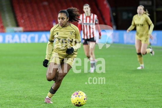 2867759 Ashleigh Weerden (11 Crystal Palace Women) controla a bola durante a partida da Barclays Women's Super League 2 entre Sheffield United e Crystal Palace em Bramall Lane em Sheffield, Inglaterra, em 12 de janeiro de 2026. (Sean Chandler / SPP)