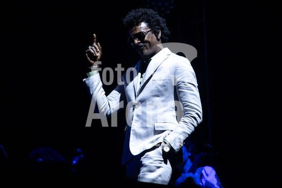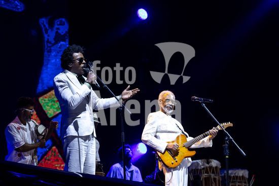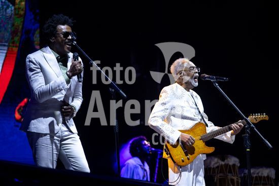2825908 O cantor Gilberto Gil se apresenta em show da Tempo Rei, sua turnê de despedida dos palcos. A performance acontece na noite desta sexta-feira (17) no Allianz Parque no Allianz Parque em São Paulo, SP. Na foto, Seu Jorge faz participação especial na música "Refavela."