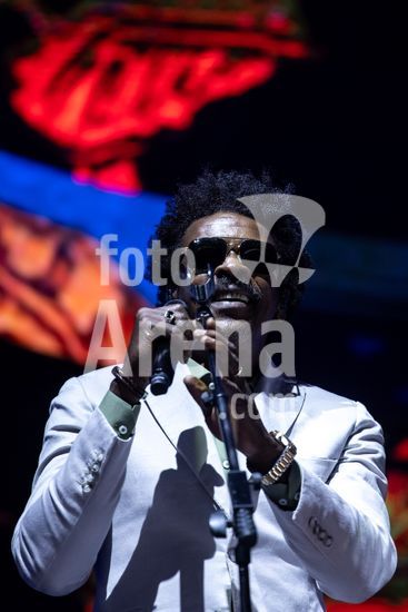 2825907 O cantor Gilberto Gil se apresenta em show da Tempo Rei, sua turnê de despedida dos palcos. A performance acontece na noite desta sexta-feira (17) no Allianz Parque no Allianz Parque em São Paulo, SP. Na foto, Seu Jorge faz participação especial na música "Refavela."