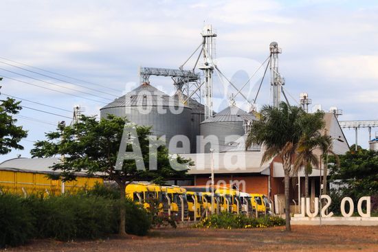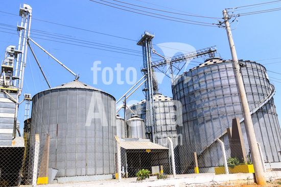 2863497 Silos de grãos são estruturas verticais ou horizontais, geralmente metálicas ou de concreto, usadas para armazenar grãos (milho, soja, trigo) de forma segura, protegendo-os de umidade, pragas e variações climáticas, mantendo a qualidade.