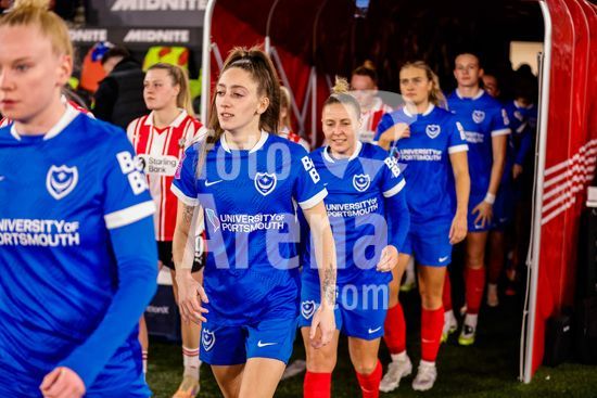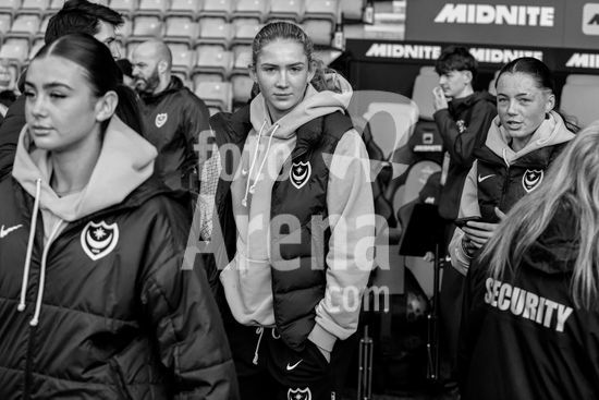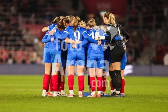 2867327 As jogadoras do Pompey se reunem antes do inicio do segundo tempo durante a partida da Barclays Women's Super League 2 entre Southampton FC Women e Portsmouth Women, no St Mary's Stadium, em Southampton, Inglaterra. (Neil Holmes/SPP)
