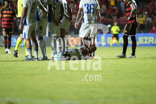 2922978 Sport x Avaí, em jogo válido pela Série B do Campeonato Brasileiro, em Recife, PE, na noite deste sábado 11. Na foto, Homem deitado na barreira.